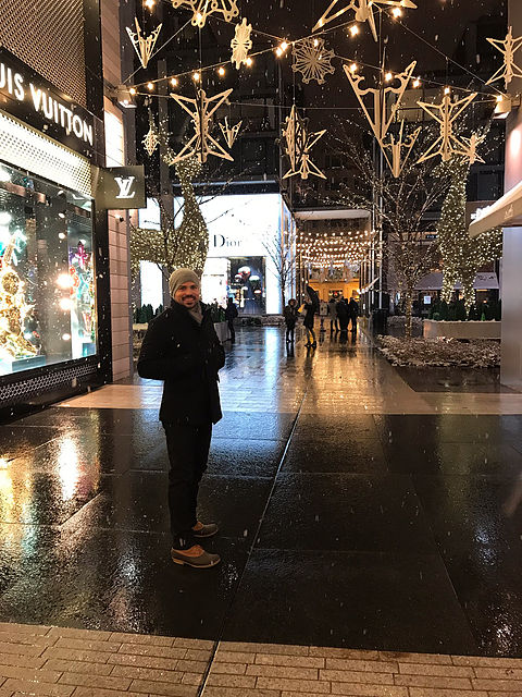 I really wanted to stop through the CityCenter because it was decorated for Christmas. This area has a bunch of high-end stores and it’s really pretty. We walked a few blocks to get there and walked through. It was gorgeous. Winter wonderland, especially with the snow falling down on us! So glad we stopped here.