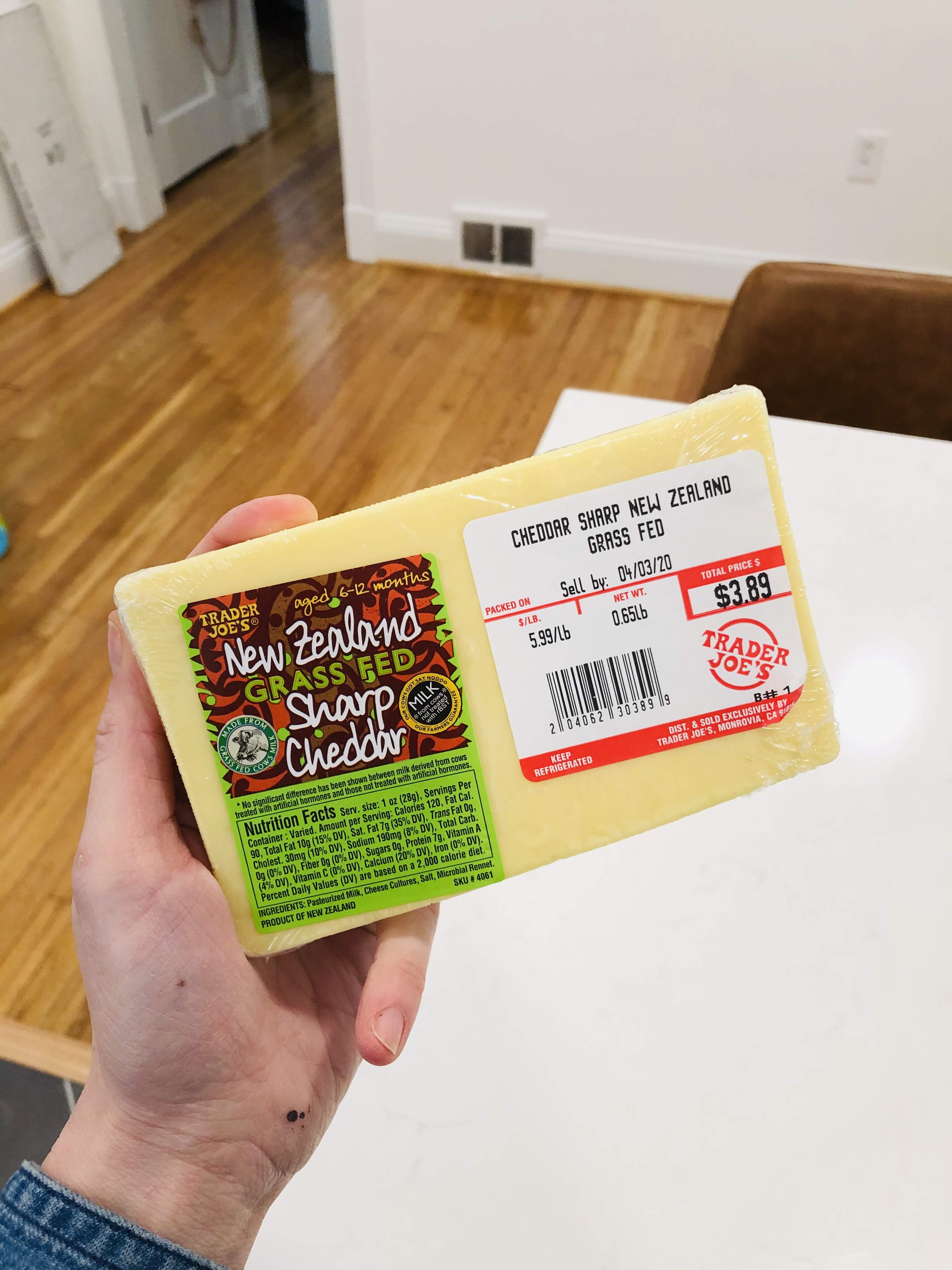 New Zealand Grass Fed Sharp Cheddar- TJ’s has the best prices on cheese! We love cheese for snacking, melting, sandwiches, topping, etc. This is a favorite!