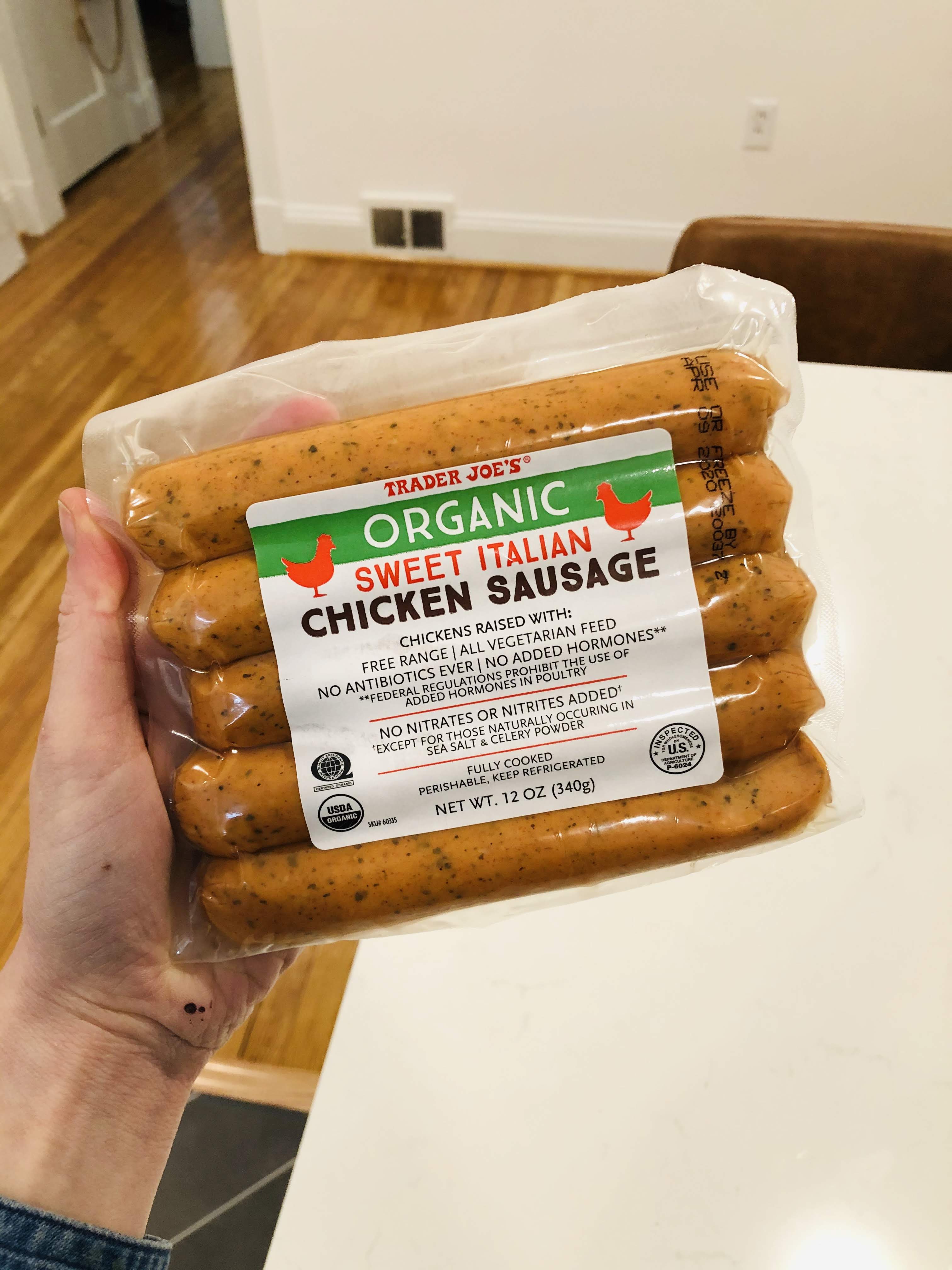 Organic Chicken Sausage- Love these chicken sausages. Simple ingredients & a super convenient easy protein to add to pasta, cauliflower gnocchi, etc.
