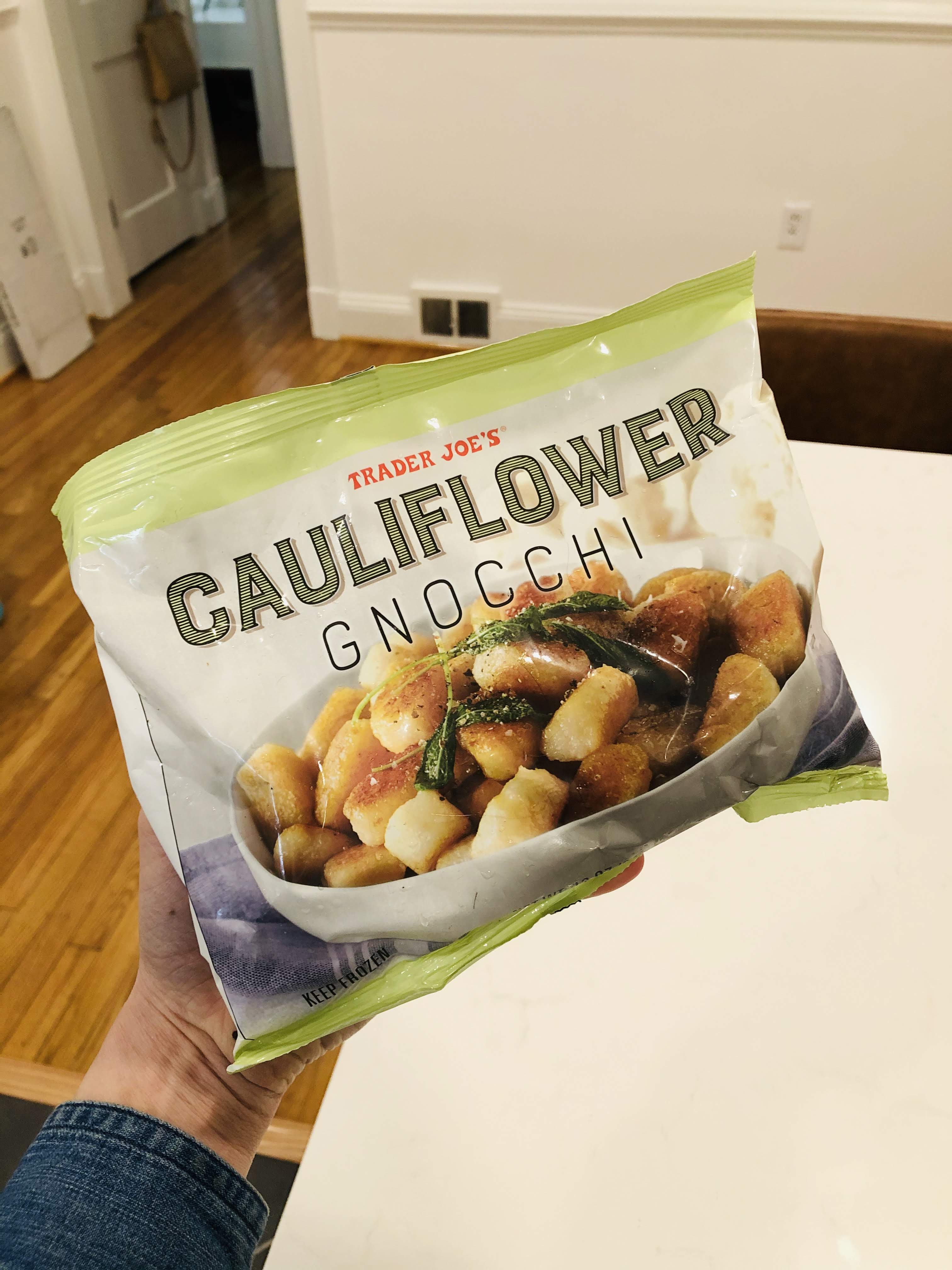 Cauliflower Gnocchi- This is not something I’d typically go for first thing, but we actually love it. Don’t boil it though, only bake! I bake it at 425 degrees for 25 minutes (thawed for like 5 minutes before on the pan) and drizzle with a tiny bit of avocado oil, sea salt, and garlic powder. Then I broil it for 5 more minutes until they get crispy! They have a kind of chewy texture that we all love. I usually mix them with chicken sausage and some kind of sauce: pesto, rao’s marinara, or parmesan/ olive oil.