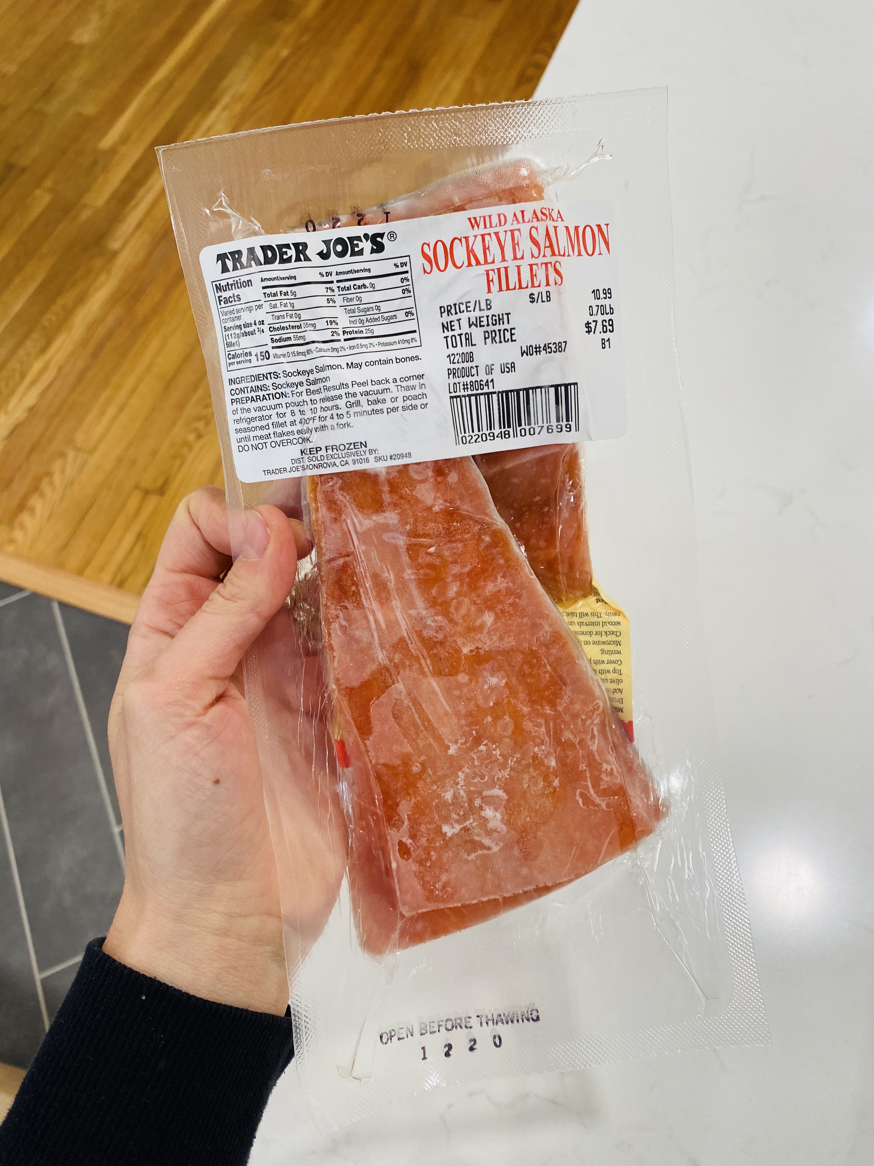 Wild Sockeye Salmon- We buy this occasionally to keep frozen for an easy dinner when we want to throw it on the grill or make my asian salmon recipe.